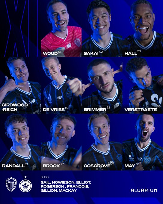 奥克兰FC首发阵容:1-沃德、2-酒井宏树、15-德弗里斯、23-霍尔、3-戈德伍德-赖希、22-布里默、6-弗拉斯特、77-布鲁克、21-兰德尔、9-科斯格罗夫、10-梅