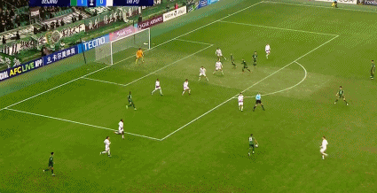 84’林良铭传禁区,塞尔吉尼奥近距离顶球攻门,遭守门员神救球险
