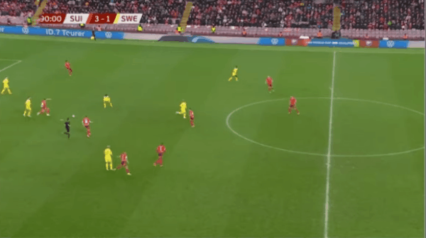 30’瑞典在三秒区内制造杀机,欲输送到门前却遭守卫球员化解