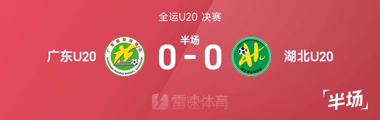 全运U20半场:钟文、袁梓楠造险,广东0-0湖北
