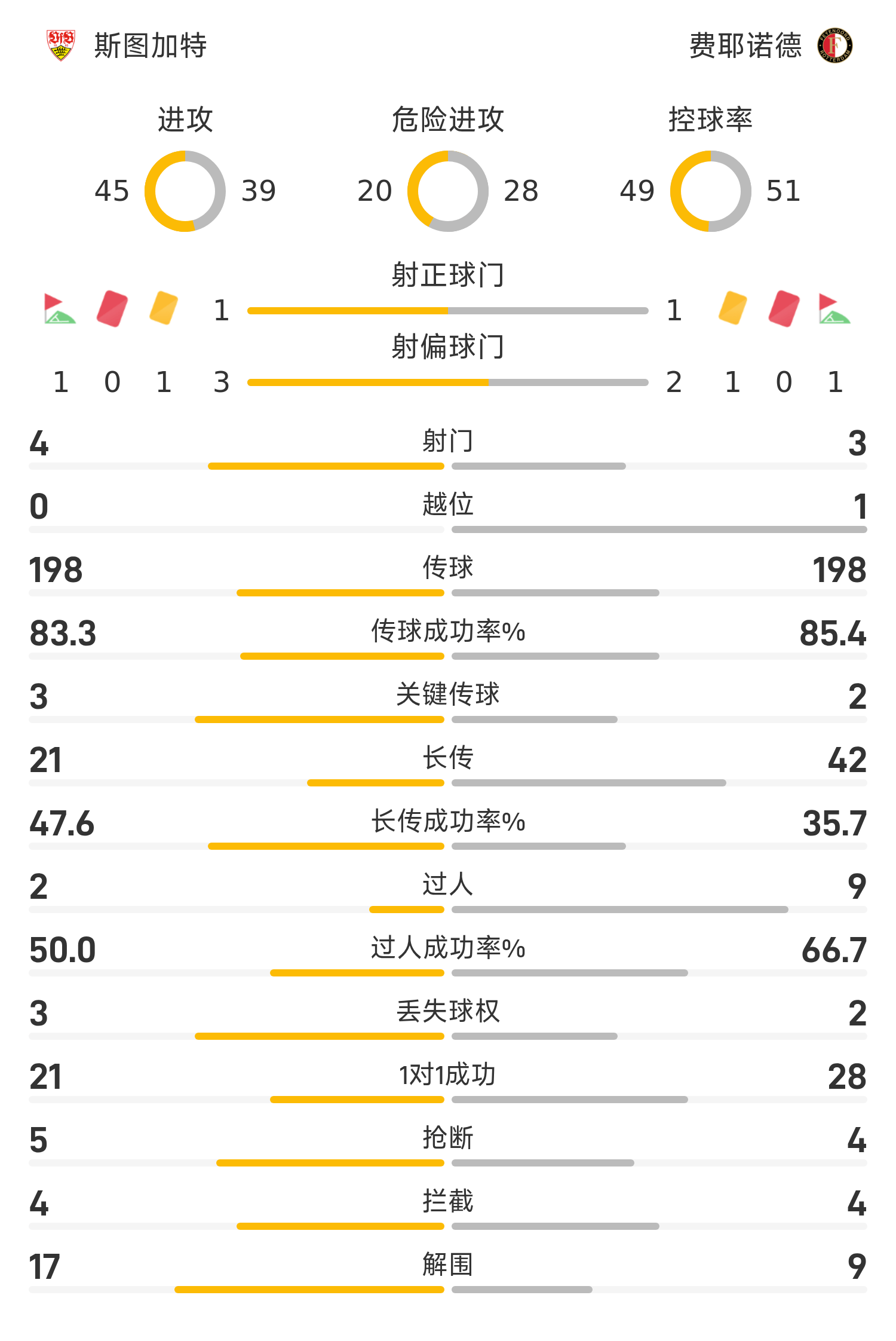 欧联半场:穆萨打门造险,斯图加特0-0费耶诺德