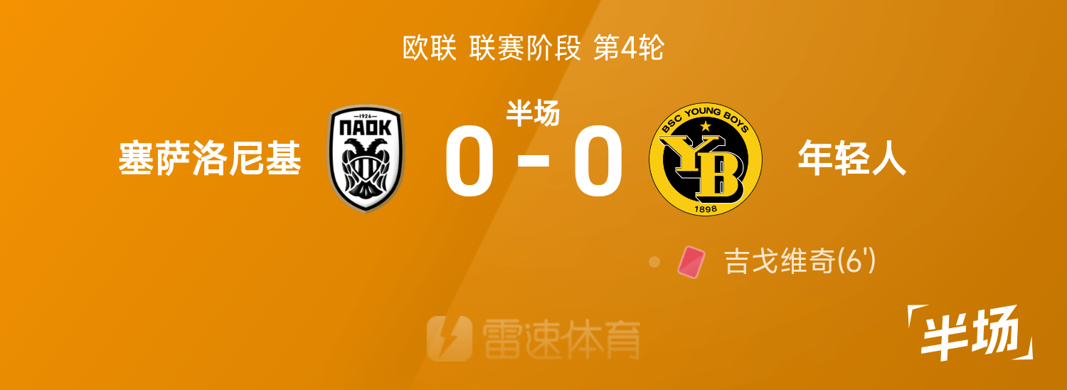 6686体育官网11月07日讯 25/26赛季欧联联赛事阶段第4轮,塞萨洛尼基迎战年少人。半场战罢,双方赛果分暂为塞萨洛尼基0-0年少人,吉戈维奇染红。