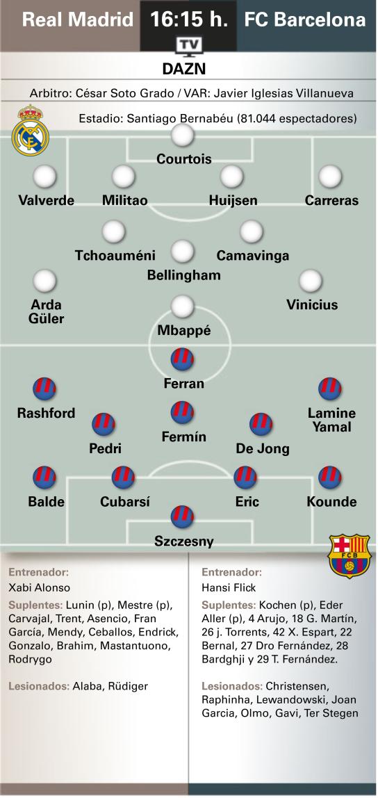 6686体育官网10月26日讯 北京时间今晚23点15分,西甲国家德比将在伯纳乌上演。皇家马德里主队场迎战巴塞罗那,这不仅是赛季首回合“国家德比”,更是一场争夺榜首的直接对话——如果取胜,巴萨将逆转局皇马登顶积分榜。赛前,《世界体育报》对两队首发进行了预测。