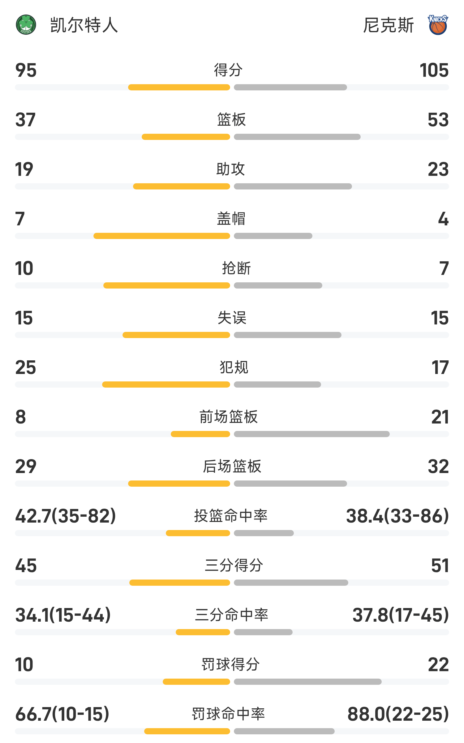 NBA战报:布伦森31分,唐斯26+13,尼克斯105-95凯尔特人