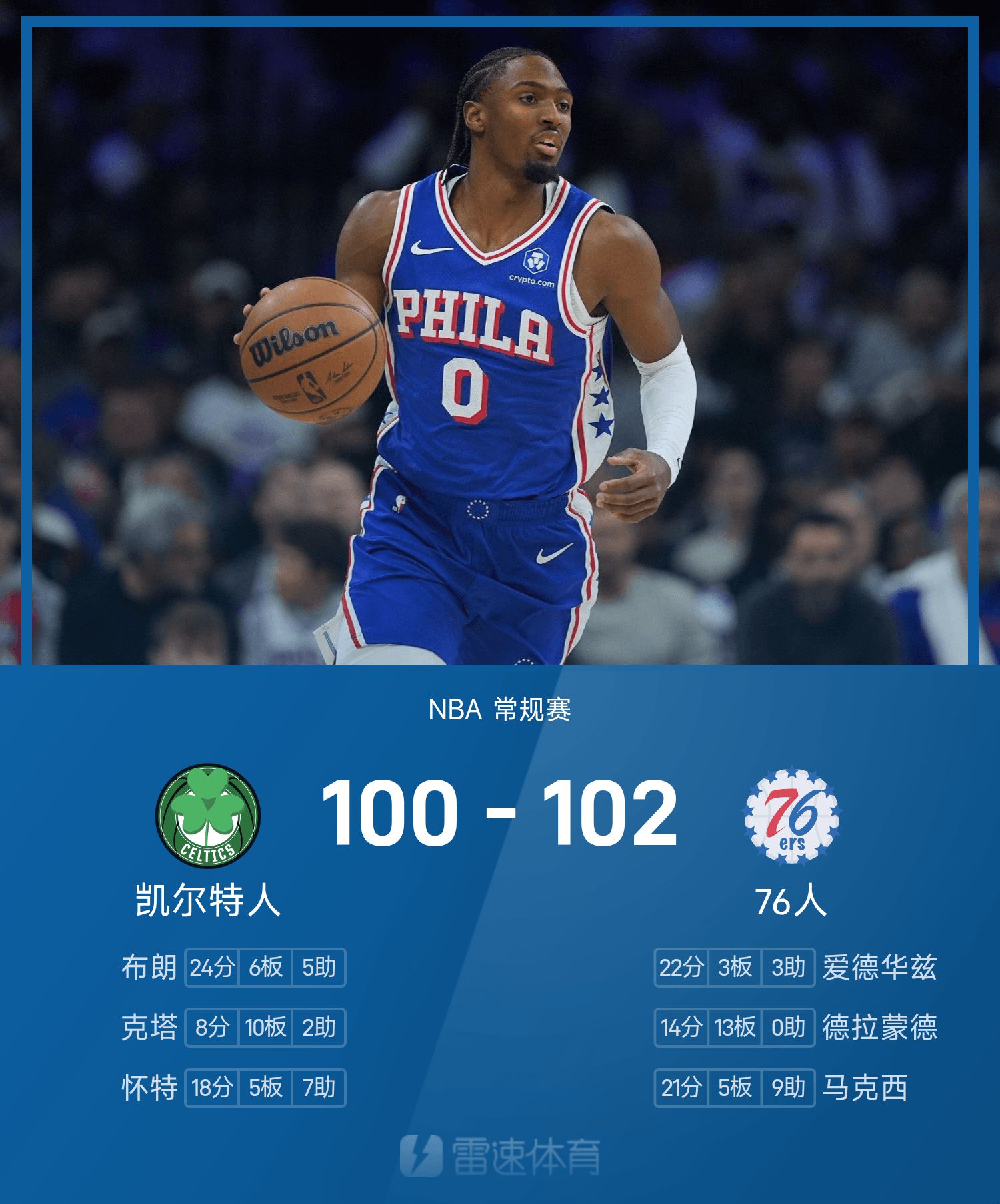 NBA战报:马克西21分9助攻,76人102-100险胜凯尔特人